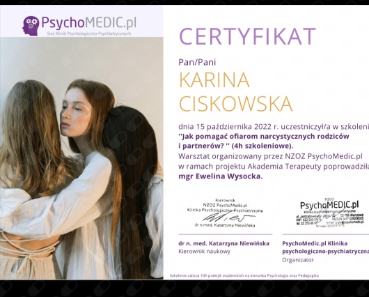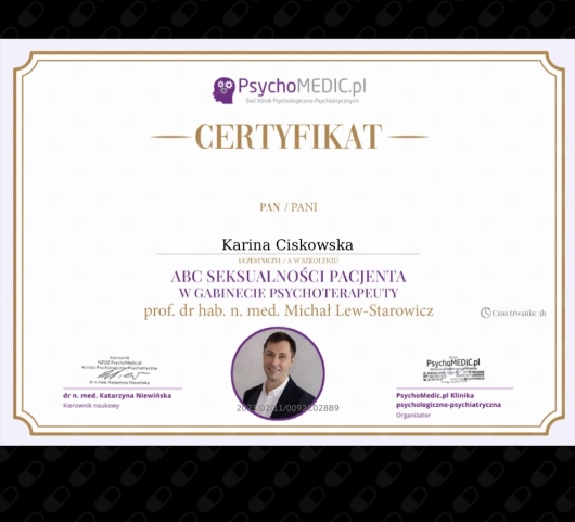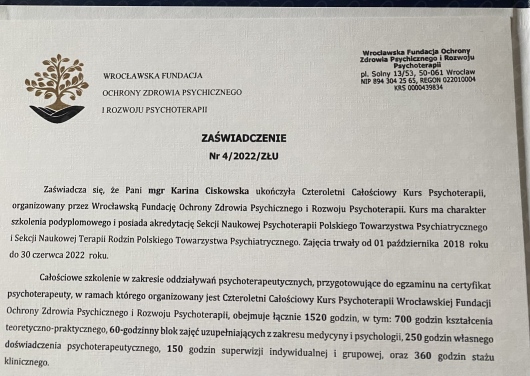 Skończyłam też 4 letni kurs Psychoterapii w nurcie integracyjnym.