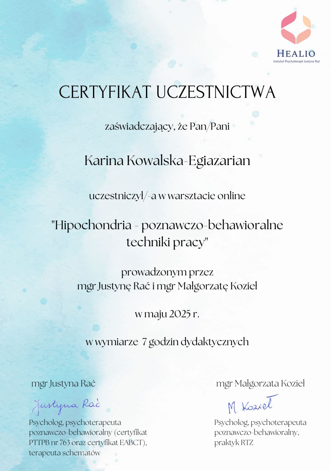 Pracuję w nurcie poznawczo-behawioralnym (CBT) i EMDR, z osobami od 14. roku życia, w języku polskim i rosyjskim.