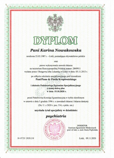 Czy Karina Nowakowska przyjmuje online, bez konieczności pojawiania się w placówce?Tak, Karina Nowakowska oferuje konsultacje online. Wybierz opcję „konsultacja online” przy umawianiu wizyty, a zobaczysz dostępne terminy.