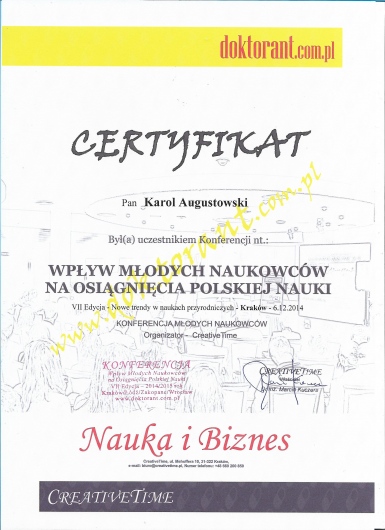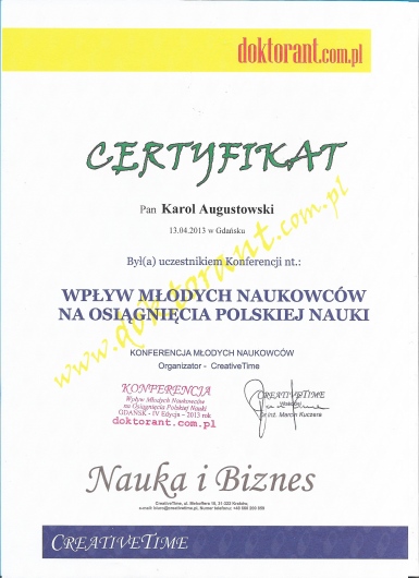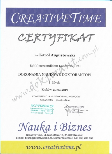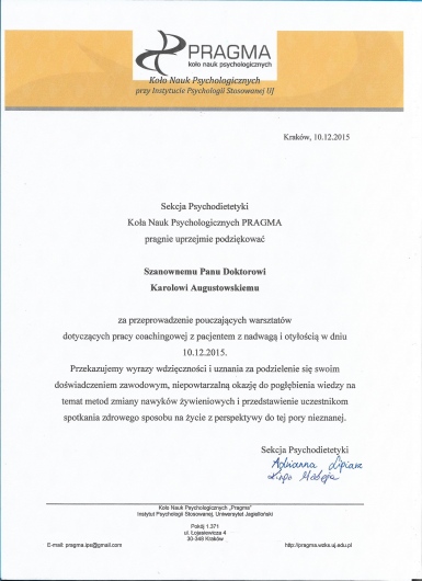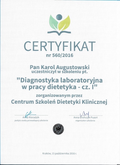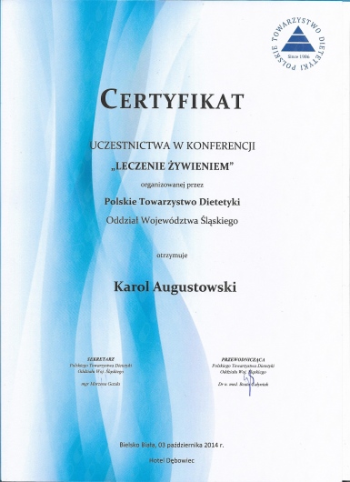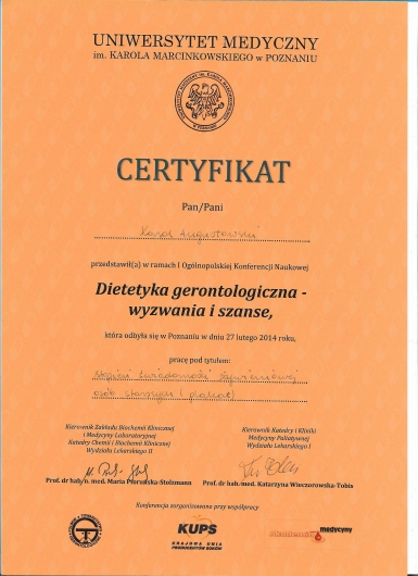 Swoją wiedzę z zakresu żywienia poszerzam nieustannie, głównie na konferencjach naukowych, na których to również przedstawiam wyniki swoich badań z zakresu żywienia człowieka.
