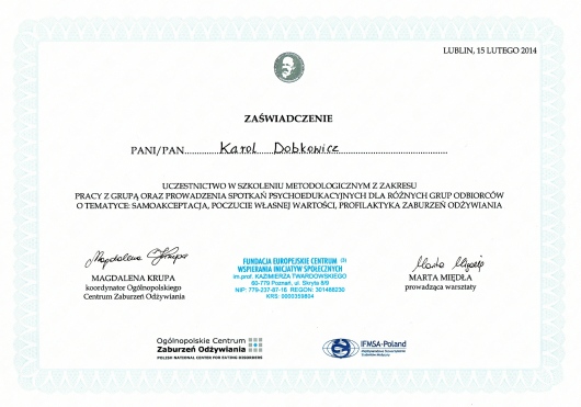 Największą nagrodą jest świadomość, że czuje się Pani dziś spokojniejsza, bardziej uważna na siebie, a jakość życia uległa pozytywnej zmianie. To efekt Pani ciężkiej pracy i zaangażowania.