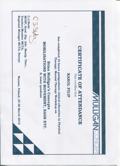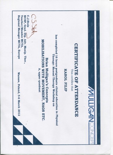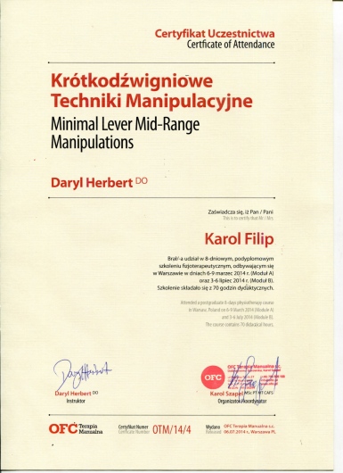 - MT Kaltenborn- Evjenth Konzept (zdany egzamin końcowy);