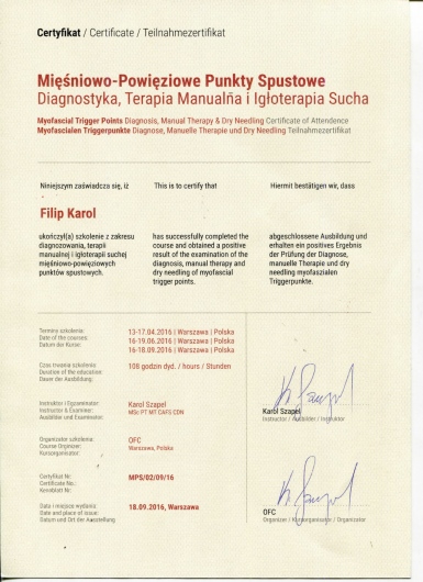 - Igłoterapię suchą zespołów mięśniowo- powięziowych