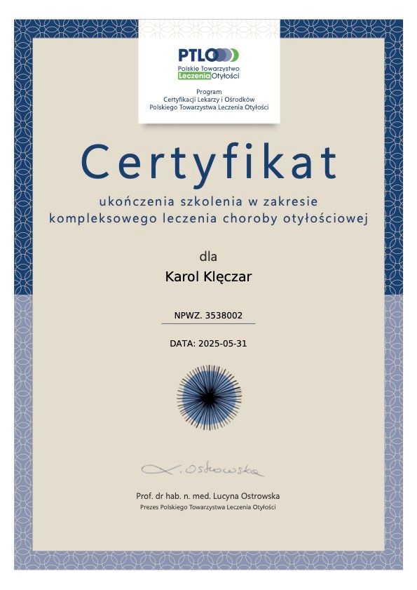 Jestem specjalistą medycyny rodzinnej i certyfikowanym lekarzem choroby otyłościowej.