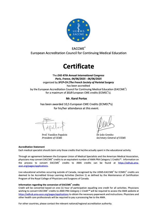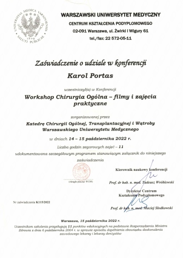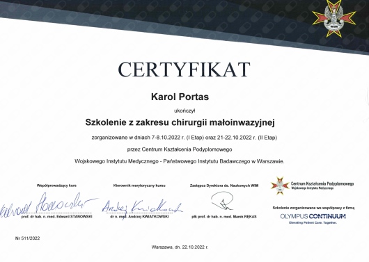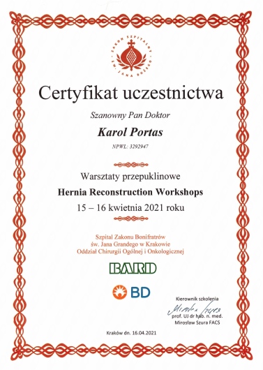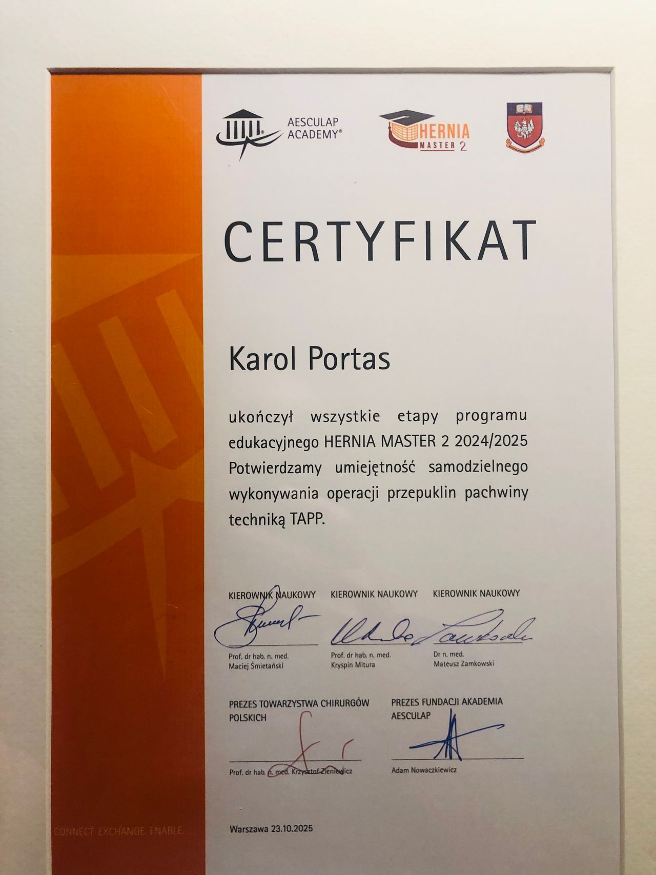 Doktor Karol Portas jest to wybitny chirurg wykonał u mnie laparoskopową operację przepukliny pachwinowej nawrotowej i wykonał to bardzo precyzyjnie jestem bardzo zadowolony i serdecznie dziękuję Panie Doktorze.