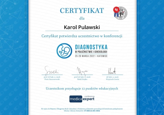 Cały czas podnoszę swoje kwalifikacje i umiejętności uczestnicząc w licznych konferencjach oraz kursach, by na co dzień wykorzystywać aktualną wiedzę i zapewniać konsultacje zgodnie z najnowszymi wytycznymi.