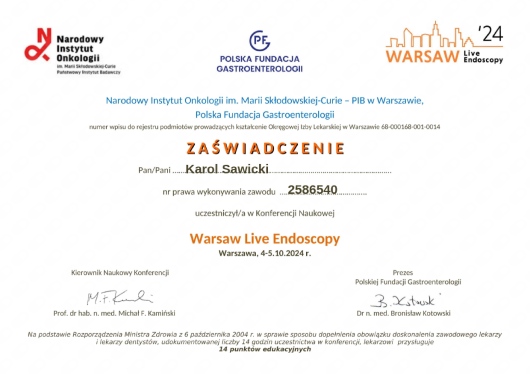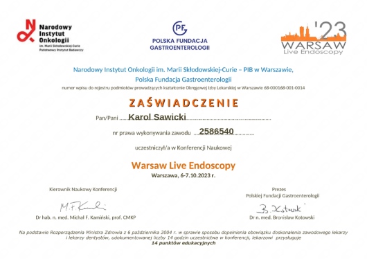 Od 2021 roku pracuję w Luxmed Onkologia (dawna Endoterapia), gdzie miałem zaszczyt szkolić się w zakresie badań EUS pod okiem prof. Marcina Polkowskiego, który jest wybitnym specjalistą w tej dziedzinie w Polsce oraz na świecie.