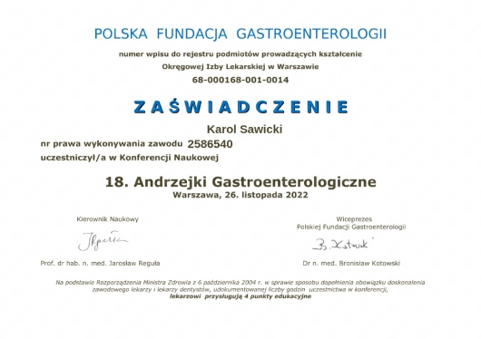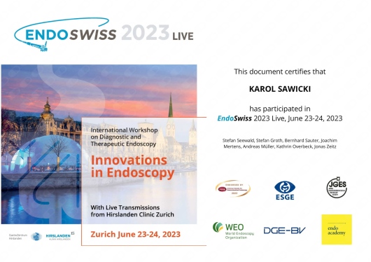 Od 2018r zacząłem zajmować się wysoko specjalistyczną diagnostyką w kierunku, między innymi raka trzustki i dróg żółciowych, w badaniu endoultrasonograficznym - EUS.