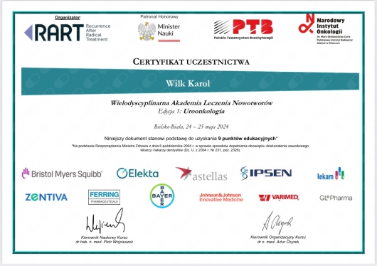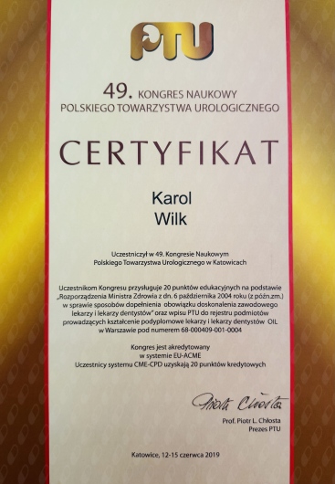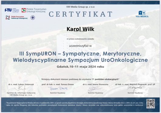 Zdecydowanie polecam go jako bardzo profesjonalnego specjalistę... Badanie przebiegło szybko i nie czułem żadnego dyskomfortu ani skrępowania. Pan Karol zna się na rzeczy i przeprowadza badanie w sposób łatwy i naturalny. Niemal natychmiast zdiagnozował mój stan i udzielił niezbędnych zaleceń. Do tego dnia nie biorę jeszcze żadnych leków i czuję się już znacznie lepiej. Spokój i pewność siebie Pana Wilka korzystnie wpływa na organizm i daje mi siłę, by radzić sobie bez leków.