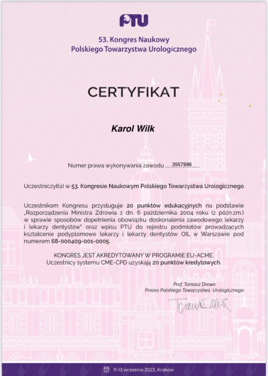 Pan doktor zdiagnozował i wyleczył chorobę, z którą przyszedłem i rozpoczął leczenie powiększonej prostaty. Mało tego wykrył guza nerki, co potwierdziła TK. Ukierunkował mnie w dalszych działaniach i nie pozostawił bez wsparcia już poza gabinetem. Polecam