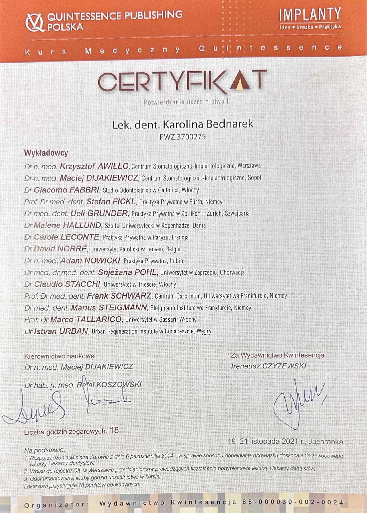 Pozdrawiam, lek. dent. Karolina Bednarek