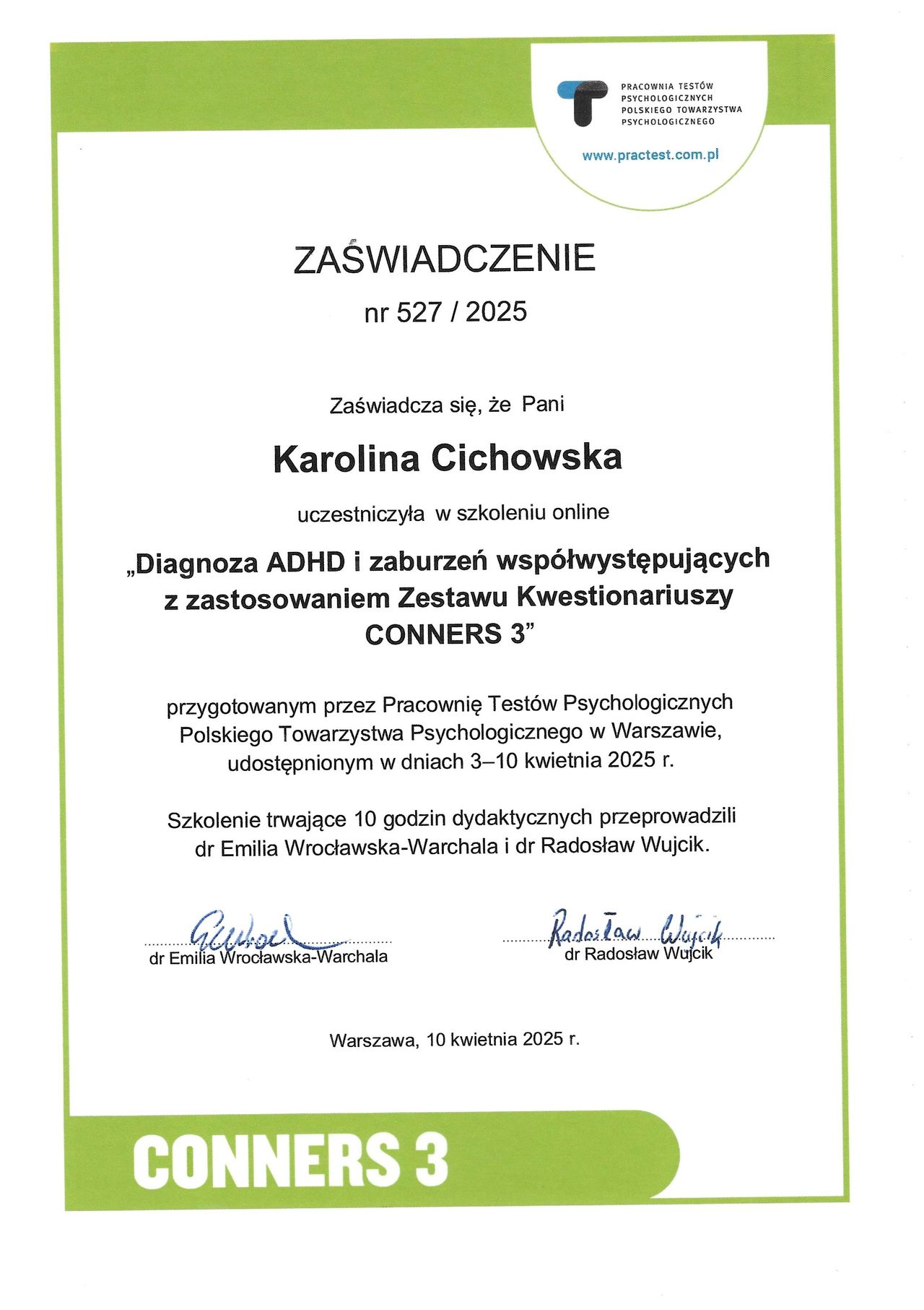 Diagnoza ADHD i zaburzeń współwystępujących z zastosowaniem zestawu kwestionariuszy Conners 3,