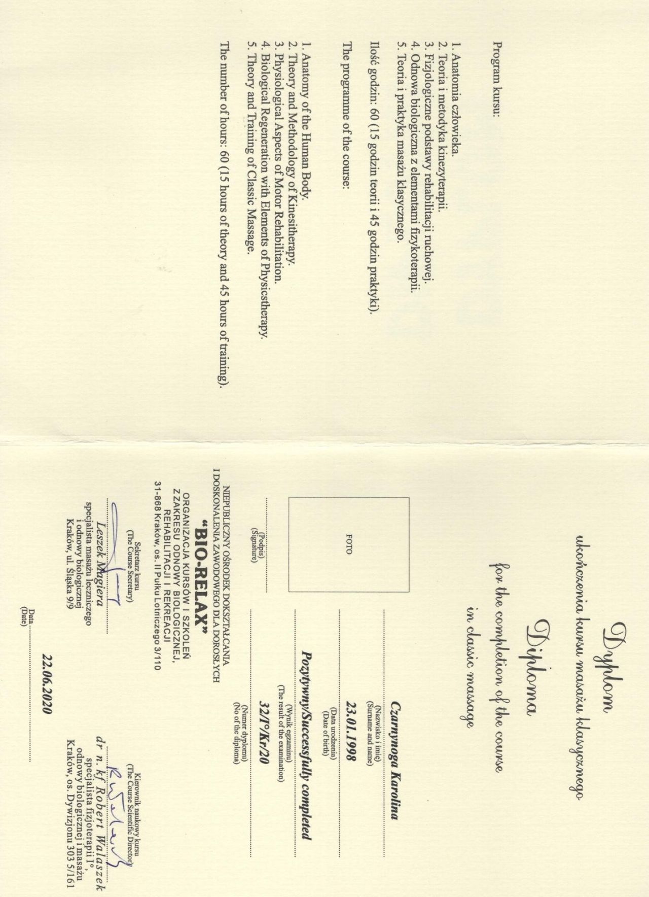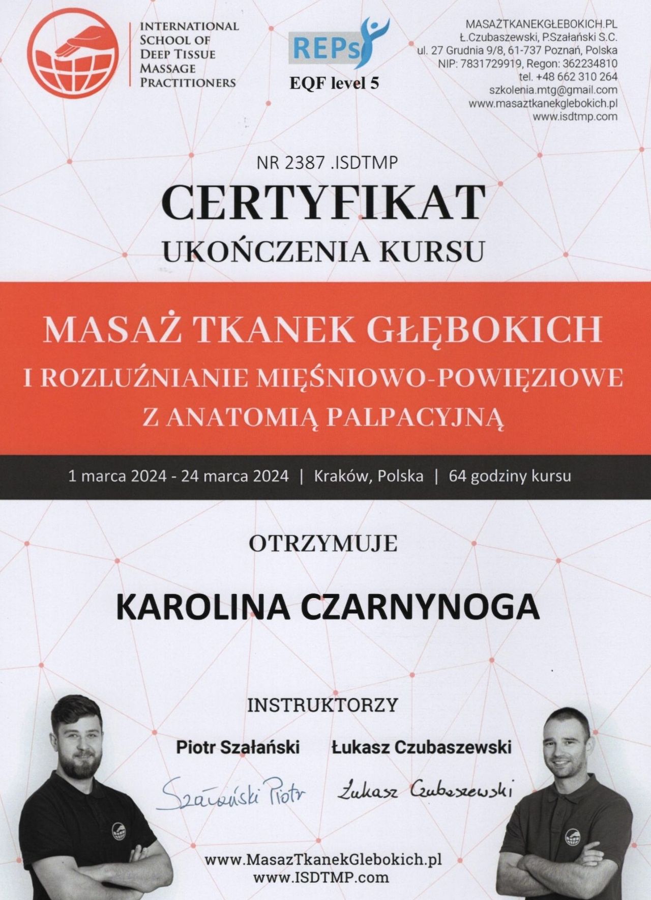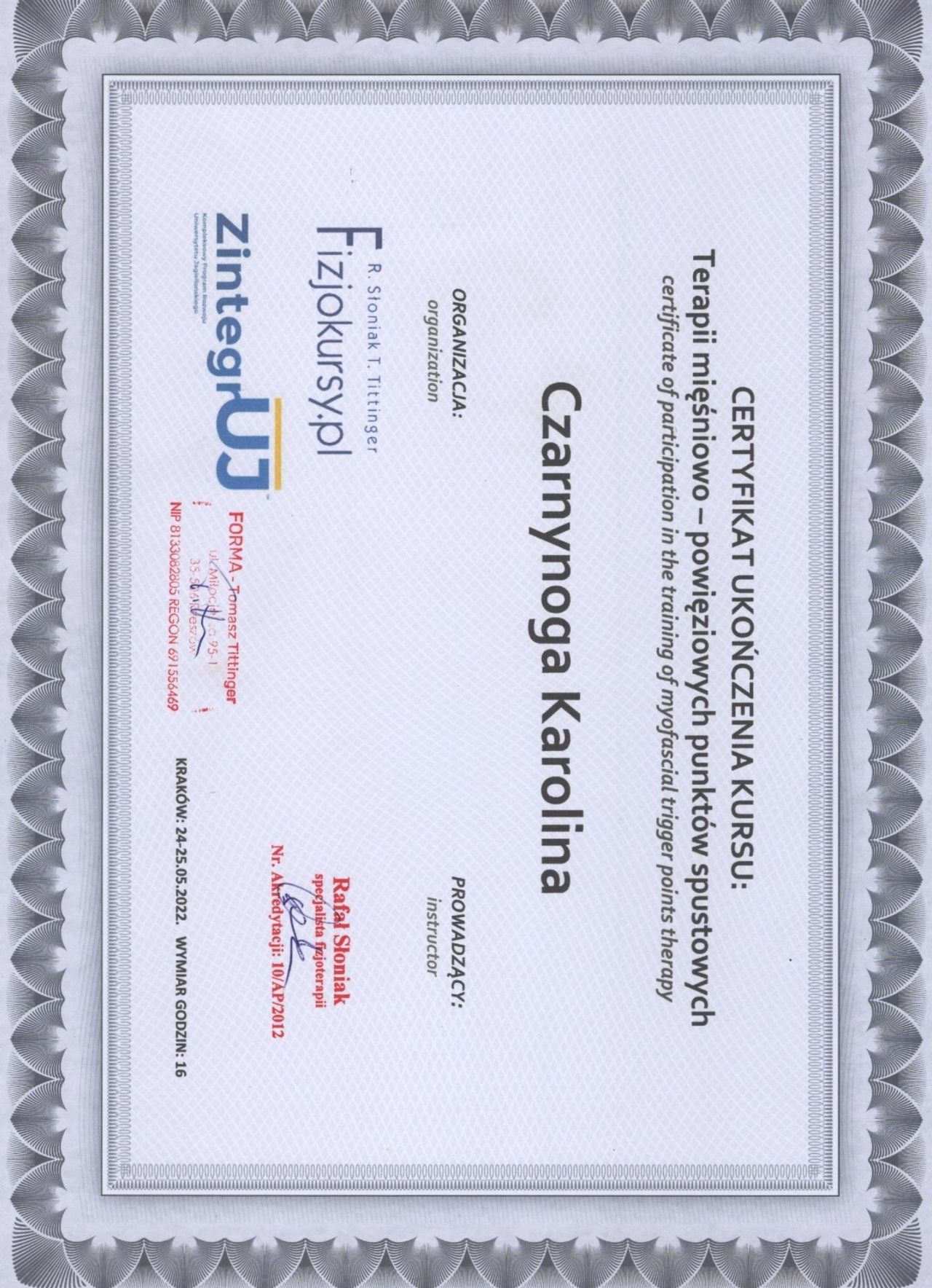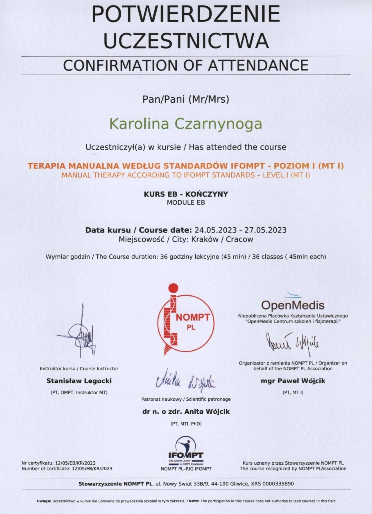 Serdecznie zapraszam osoby po zabiegach ortopedycznych oraz z przeciążeniami układu ruchu. Prowadzę treningi medyczne zarówno dla pacjentów w trakcie rehabilitacji, jak i osób, które chcą bezpiecznie rozpocząć trening siłowy. Szczególnym obszarem moich zainteresowań jest także onkologia ortopedyczna. Pracuję z indywidualnym podejściem, łącząc terapię manualną i ćwiczenia dostosowane do potrzeb pacjenta.