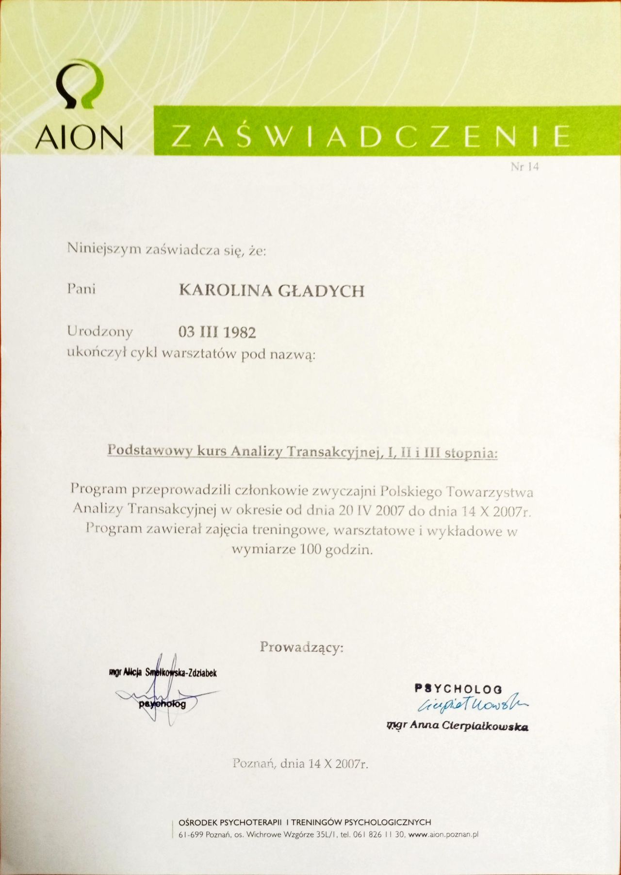 Gdzie Karolina Gładych ma swój gabinet?Karolina Gładych przyjmuje pod adresem: