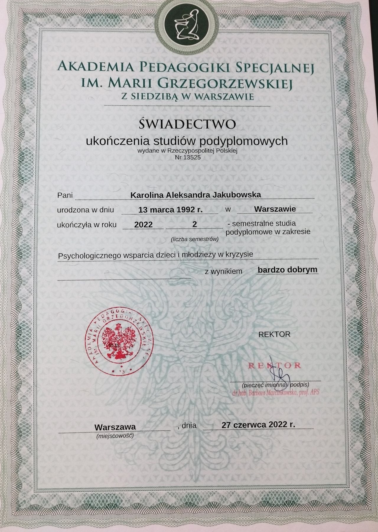 * Absolwentka Psychologii na Akademii Pedagogiki Specjalnej (APS),