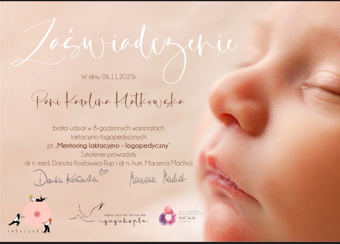 Byliśmy na wizycie u Pani Karoliny z naszym 2 tygodniowym maluszkiem. Przeprowadzono z nami bardzo szczegółowy wywiad, później bardzo delikatnie zostały zbadane odruchy u dziecka. Największym zaskoczeniem była dla nas zmiana butelki. Wybór nowej butli i zmiana pozycji do karmienia okazała się strzałem w dziesiątkę i teraz karmienia naszej malutkiej trwają zdecydowanie krócej. Dziękujemy na wsparcie i polecamy wszystkich rodzicom wizytę u Pani Karoliny.