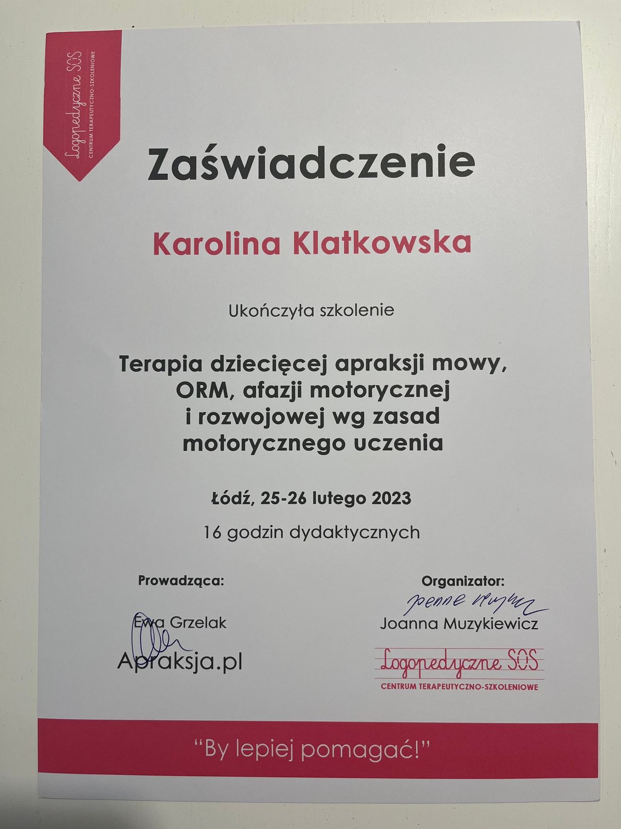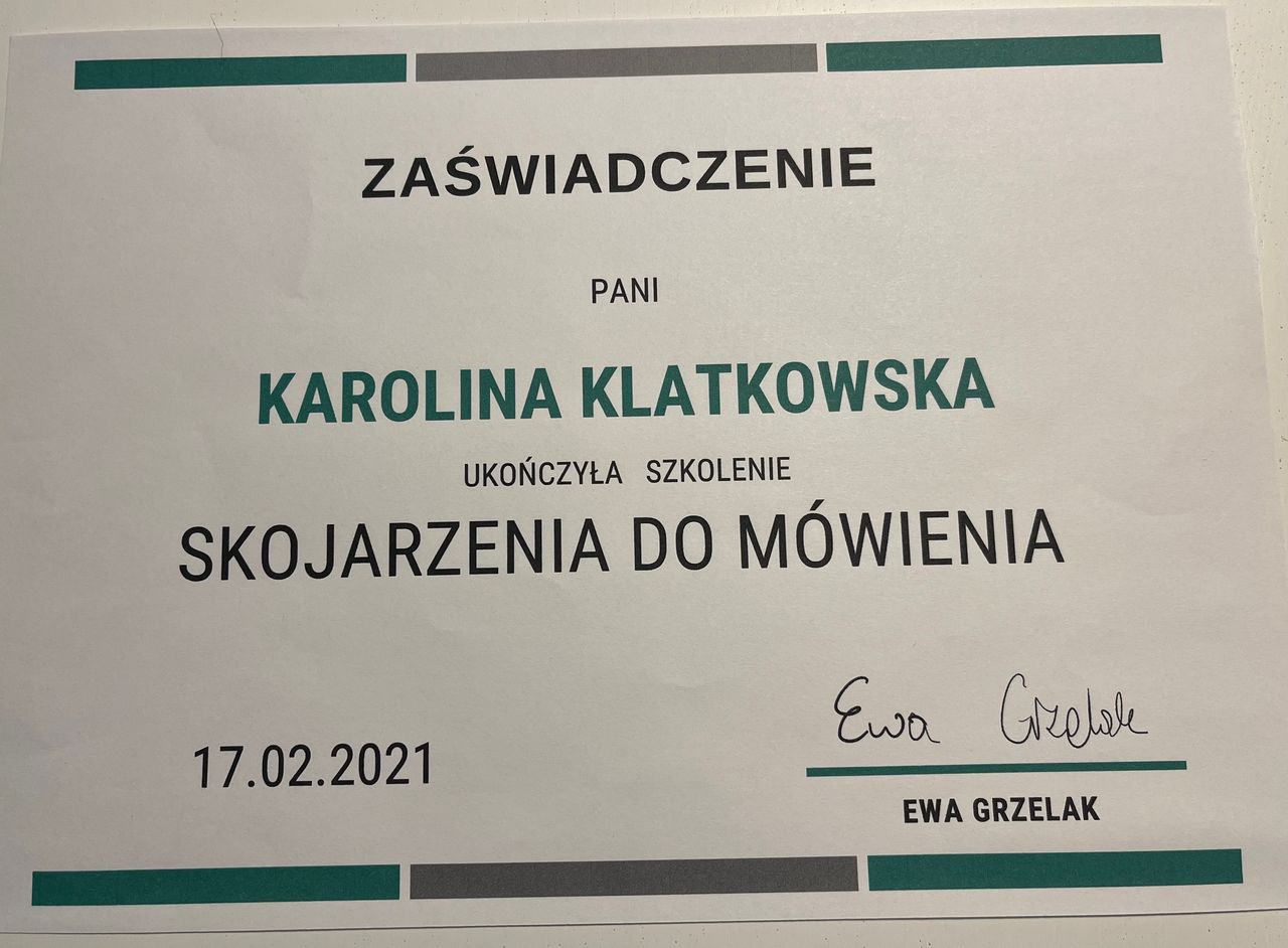 Jesteśmy bardzo wdzięczni za profesjonalną pomoc i szczerze polecamy współpracę wszystkim rodzicom szukającym skutecznej i empatycznej terapii logopedycznej.• "KLAMERKA" GABINETY LOGOPEDYCZNO - TERAPEUTYCZNE • terapia logopedyczna •
