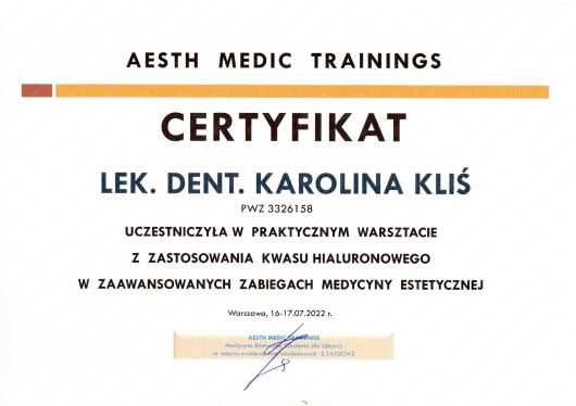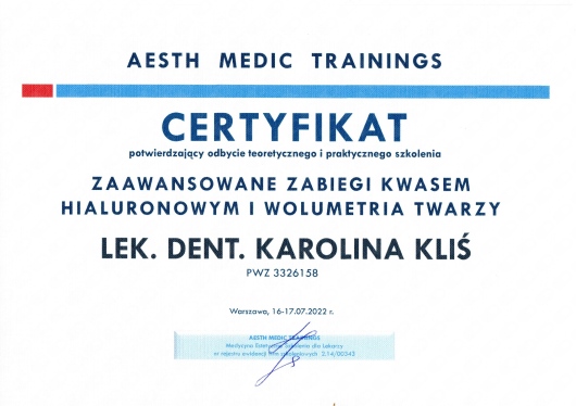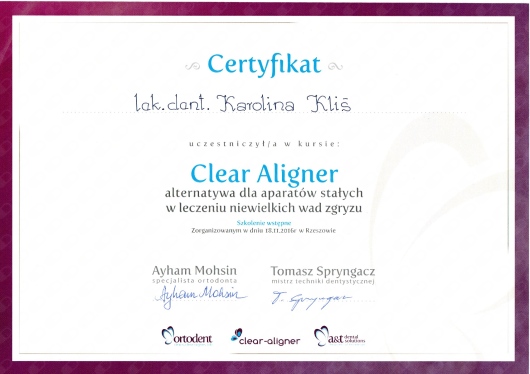 Jaki jest zakres porad oferowanych przez Karolina Kliś-Pogwizd?Karolina Kliś-Pogwizd to stomatolog, lekarz wykonujący zabiegi medycyny estetycznej. Na podstawie swojego doświadczenia i wykształcenia Karolina Kliś-Pogwizd oferuje usługi takie jak: Konsultacja stomatologiczna, Invisalign, Konsultacja Invisalign, Leczenie ortodontyczne Invisalign®, bonding, wypełnienie kompozytowe, wypełnienie w zębie mlecznym, Konsultacja z zakresu medycyny estetycznej.