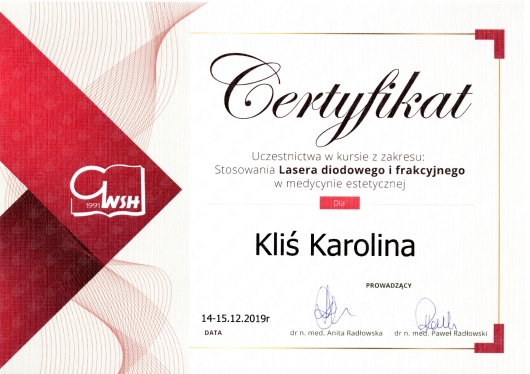 Serdecznie polecam Panią Doktor Karolinę Kliś-Pogwizd. To niezwykle kompetentna i profesjonalna specjalistka, którą znam od bardzo długiego czasu. Gdy pojawiła się u mnie opryszczka, nie zbagatelizowała problemu. Zareagowała szybko i skutecznie. Zależało mi na jak najszybszym pozbyciu się zmiany, dlatego zaproponowała laseroterapie biostymulacyjną, która przyniosła bardzo dobre efekty. Jestem bardzo zadowolona z opieki i podejścia do pacjenta