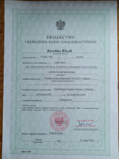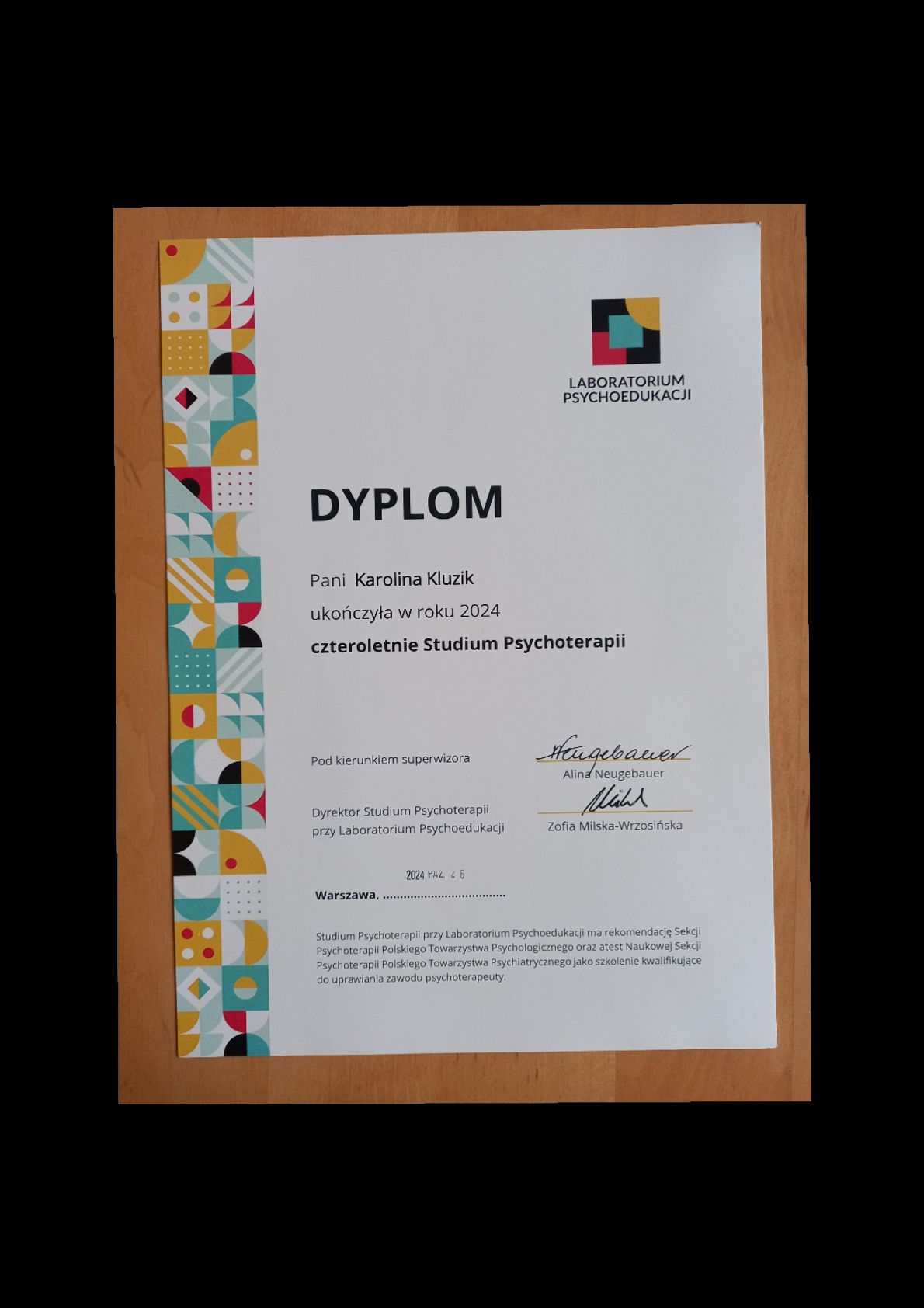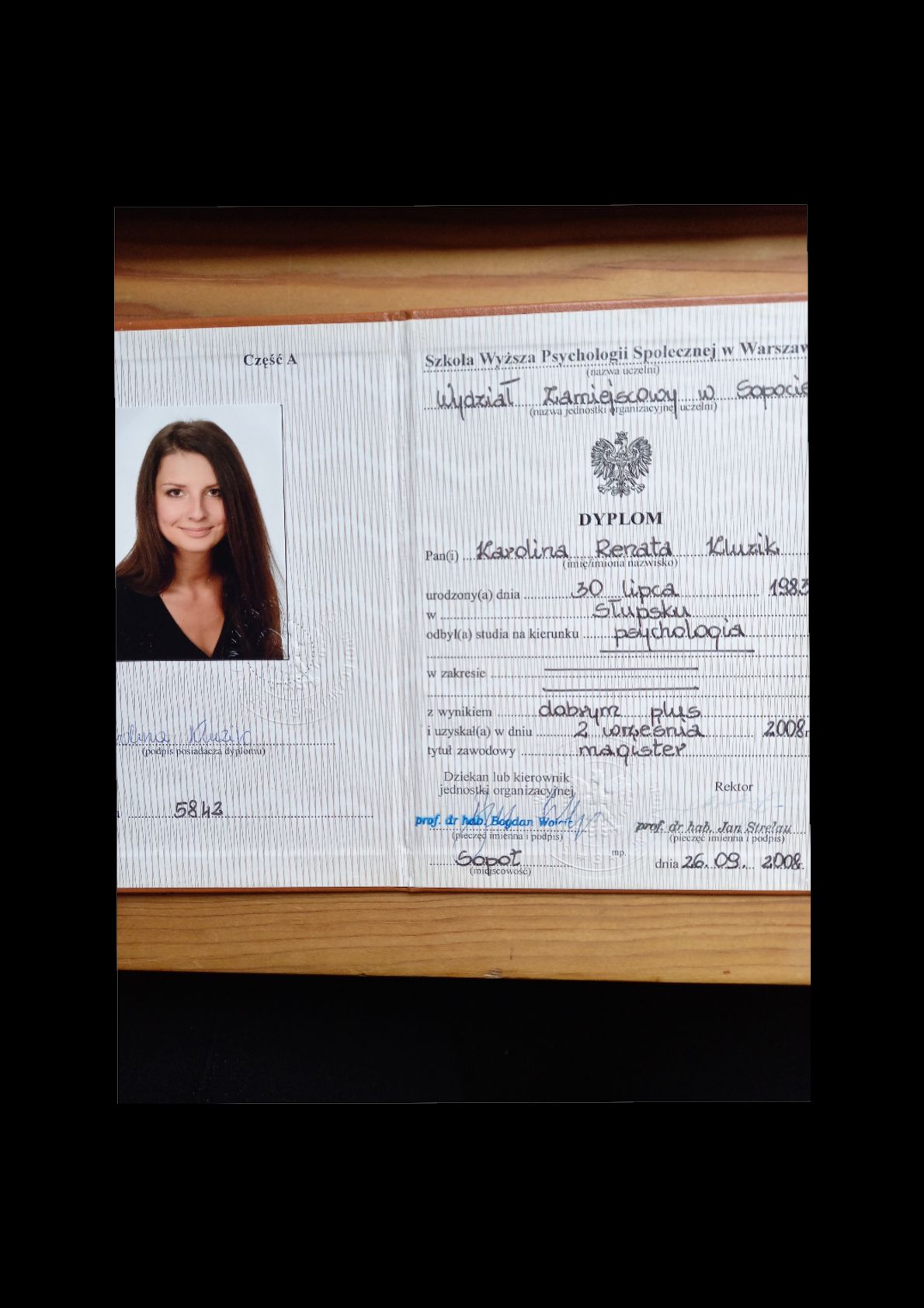 Ukończyłam szkolenia z zakresu m.in Open Dialog, Podstaw terapii Krótkoterminowej skoncentrowanej na rozwiązaniu, testów MMPI oraz diagnozy pacjentów z zaburzeniami osobowości.