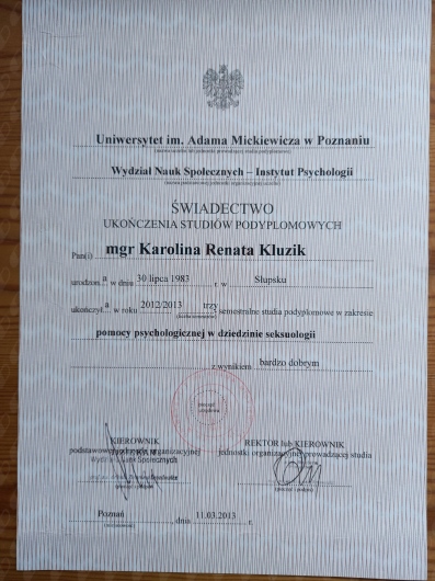 Należę do Polskiego Towarzystwa Seksuologicznego oraz Polskiego Towarzystwa Psychiatrii Sądowej.