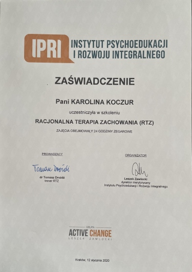 Ważny jest dla mnie ciągły rozwój zawodowy, tak aby móc jak najlepiej pomóc przychodzącym do mnie osobom.