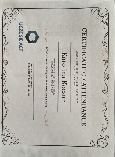 Dodatkowo ukończyłam studia podyplomowe z dietetyki, co jest pomocne w terapii osób z zaburzeniami odżywiania.