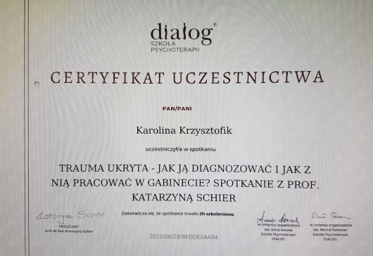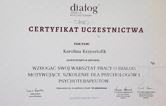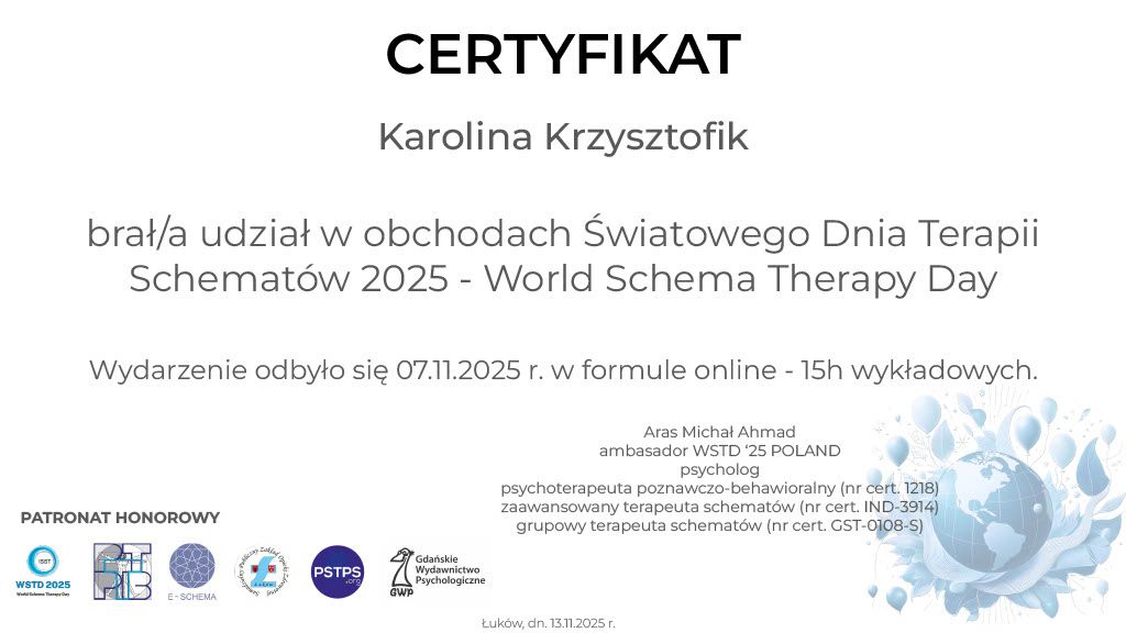 Zapraszam Cię do kontaktu jeśli chcesz dokonać zmian w swoim życiu i potrzebujesz wsparcia w trudnej dla siebie sytuacji. Również jesli doświadczasz nasilonego lęku, zaburzeń nastroju, problemów w relacjach z innymi, niskiego poczucia własnej wartości. Pracuję w nurcie poznawczo- behawioralnym. Jest to jeden z najbardziej przebadanych naukowo pod wzgledem skutecznego działania nurtów w psychoterapii.
