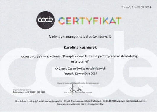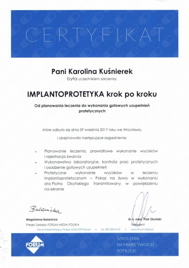 Polecam p. doktor Karoline Kusnierek wszystkim, ktorzy troszcza sie o swoj usmiech i poszukuja profesjonalisty, ktory w najlepszy sposob potrafi sie nim zaopiekowac.• SolDentis - Stomatologia Kompleksowa • •