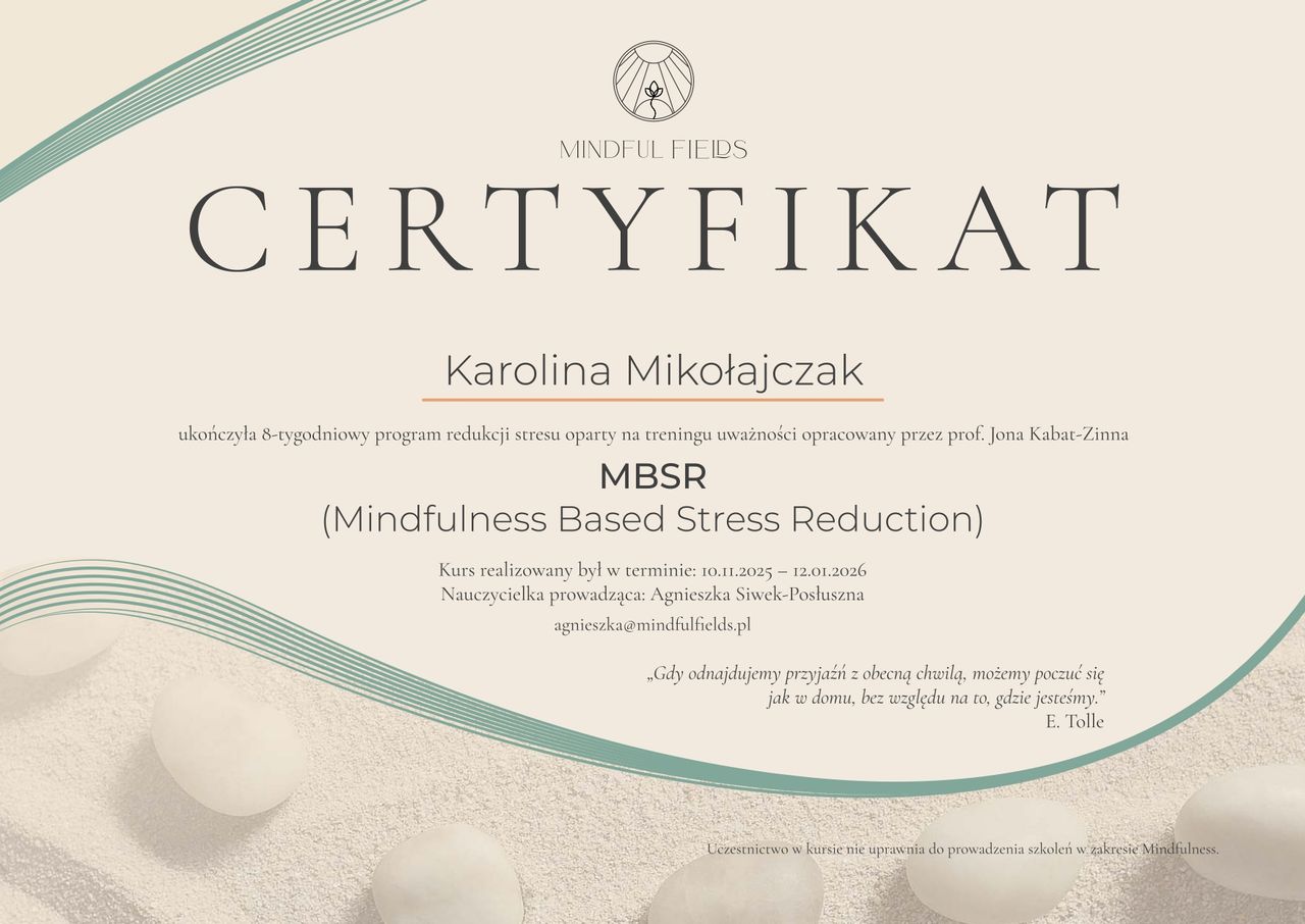Serdecznie polecam wizytę u pani Karoliny. Spotkania odbywają się w spokojnej, przyjaznej atmosferze, a rozmowy pomagają spojrzeć na problemy z nowej perspektywy.