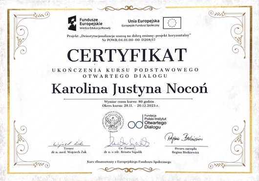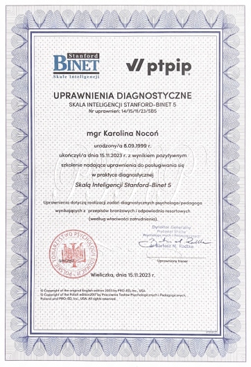 Mgr psychologii stosowanej na Uniwersytecie Jagiellońskim. Aktualnie jestem w trakcie 4-letniego szkolenia uprawniającego do uzyskania Certyfikatu Psychoterapeuty Poznawczo-Behawioralnego Polskiego Towarzystwa Terapii Poznawczo-Behawioralnej (PTTPB).