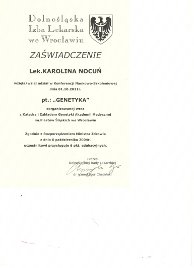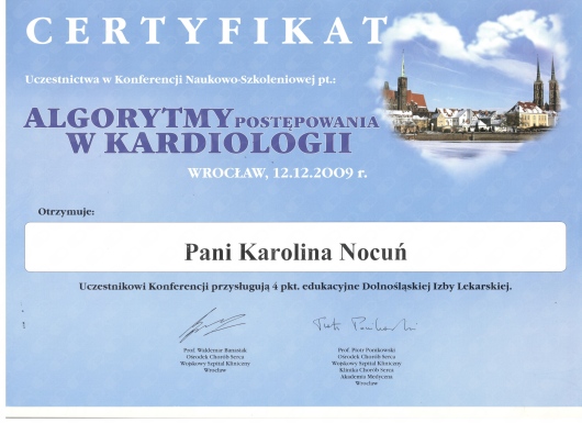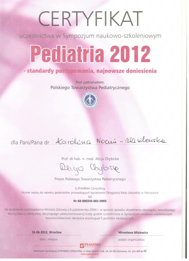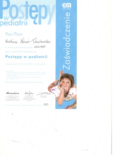 Uczestniczyłam w wielu konferencja naukowych i szkoleniach medycznych oraz ukończyłam kursy wymagane do specjalizacji dla lekarza pediatry.