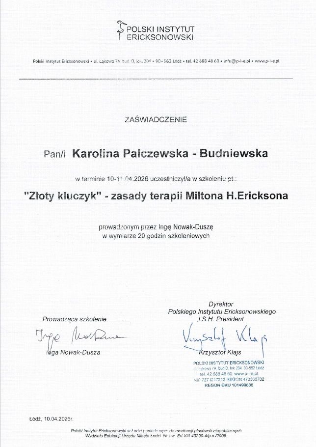 "Złoty kluczyk" – zasady terapii Miltona H. Ericksona (Polski Instytut Ericksonowski).