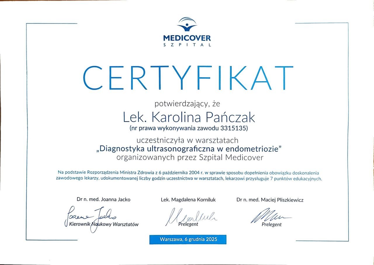Nazywam się Karolina Pańczak i jestem specjalistką ginekologii i położnictwa.