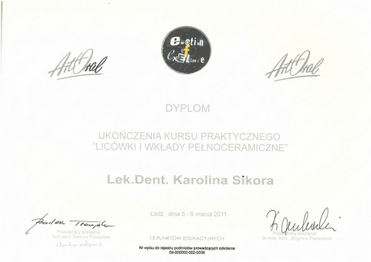 Nieustannie pogłębiam swoją wiedzę uczestnicząc w licznych kursach i szkoleniach teoretycznych i praktycznych.