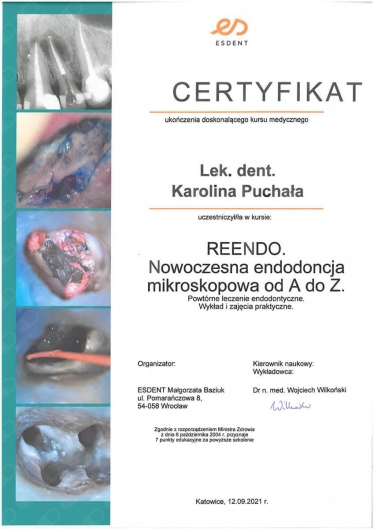 Pani dr Karolina Puchała bardzo profesjonalnie realizuje plan leczenia , zaczynając od wizyt diagnozujących po realizację kolejnych etapów leczenia . Szczegółowo zapoznaje pacjenta ze stosowanymi metodami leczenia . Pani doktor wyróżnia się empatycznym podejściem , dba o to aby pacjent czuł się dobrze podczas każdej wizyty .