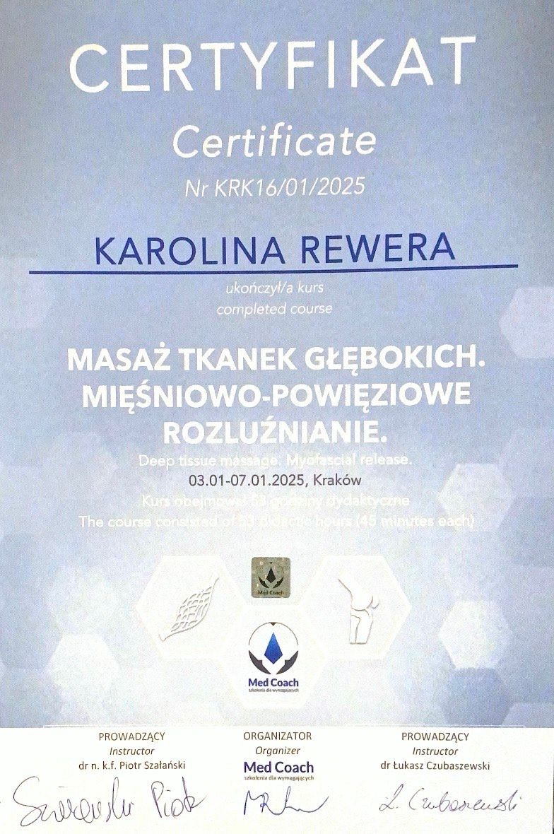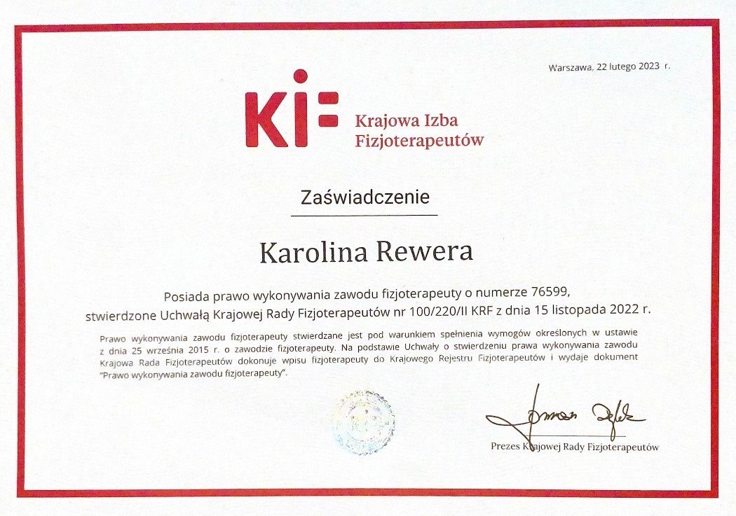 Jak Karolina Rewera umawia wizyty?Karolina Rewera używa kalendarza ZnanyLekarz, dlatego na stronie widzisz aktualne terminy. Wystarczy, że wybierzesz datę i godzinę, które odpowiadają Ci najbardziej. Umawianie wizyty jest darmowe, a tuż przed terminem wyślemy Ci przypomnienie.