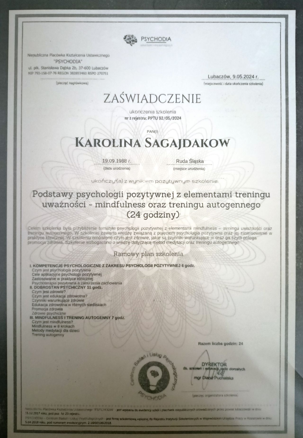 Techniki Pani Karoliny to naprawdę CUD. Jeśli każdy chciałby połączyć Ciało Umysł i Duszę to każdy by żył w zdrowiu, spokoju i spełnieniu. Praca psychologa naprowadza nas na właściwe ścieżki życiowe, ale największa pracę musimy zrobić my sami. Moje zmiany zaczęły się od nastawienia, że lepiej żałować, że się coś zrobiło, niż że się czegoś nie zrobilo. I zmiana nie kończy się na jednym. To ciągła praca, walka z samym sobą, wychodzenie ze swojej strefy komfortu, bo człowiek z natury jest leniwy. Jeśli podejmiesz decyzję na zmiany to wsparcie Pani Karoliny jest nieocenione. Jestem wdzięczna, że trafiłam na odpowiednią osobę na odpowiednim miejscu. Dzięki sobie, ale z pomocą Pani Karoliny zaczęłam tworzyć swoje nowe lepsze życie. Dziękuję bardzo za wszystko i życzę nowych doświadczeń zawodowych.