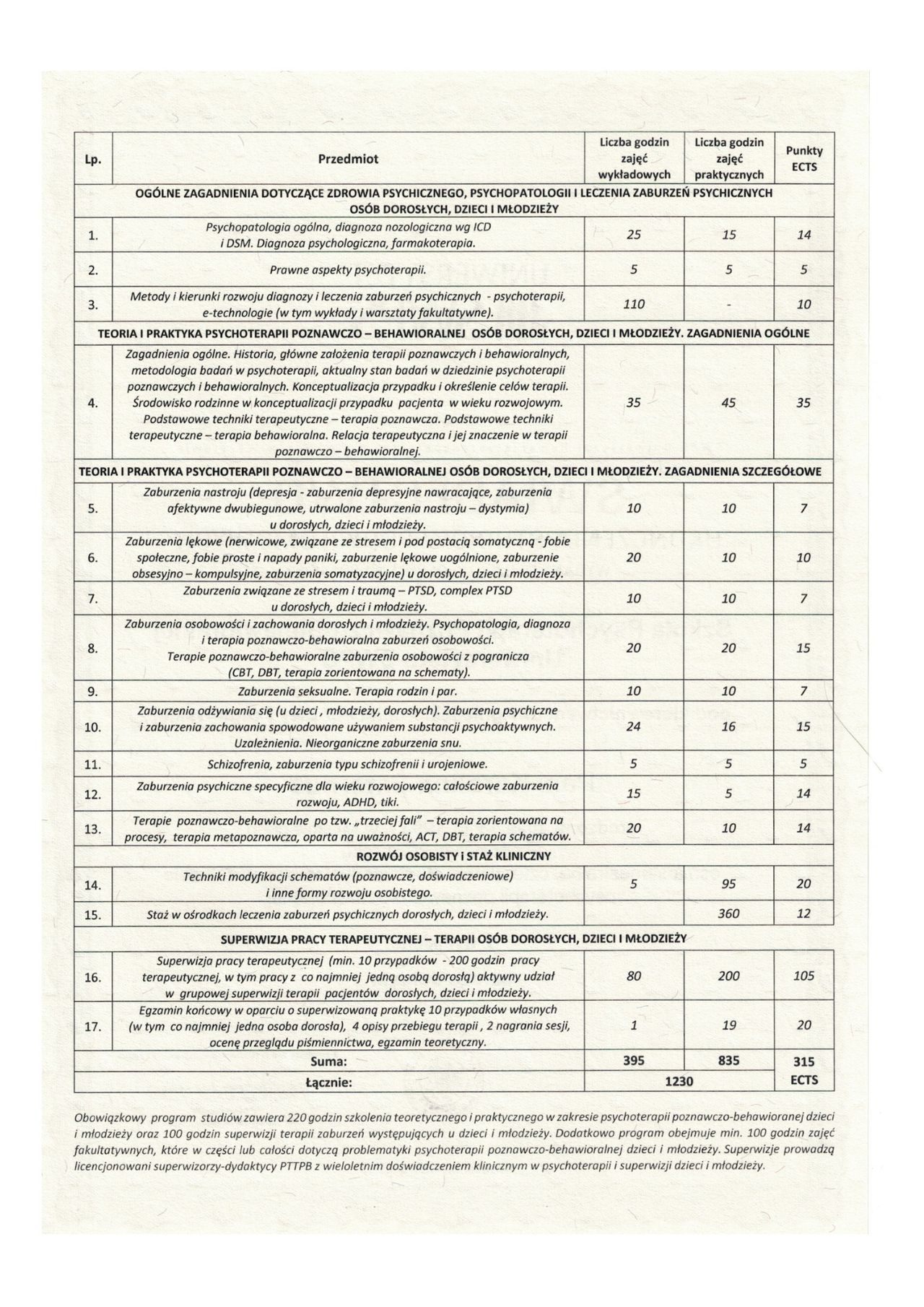 Obecnie jestem w trakcie realizacji pionierskiego rocznego kursu z Psychogastroenterologii organizowanego przez Centrum CBT we współpracy z Polskim Towarzystwem Gastroenterologii oraz zaawansowanego szkolenia w Terapii Dialektyczno-Behawioralnej (DBT) z ramienia PTTDB.
