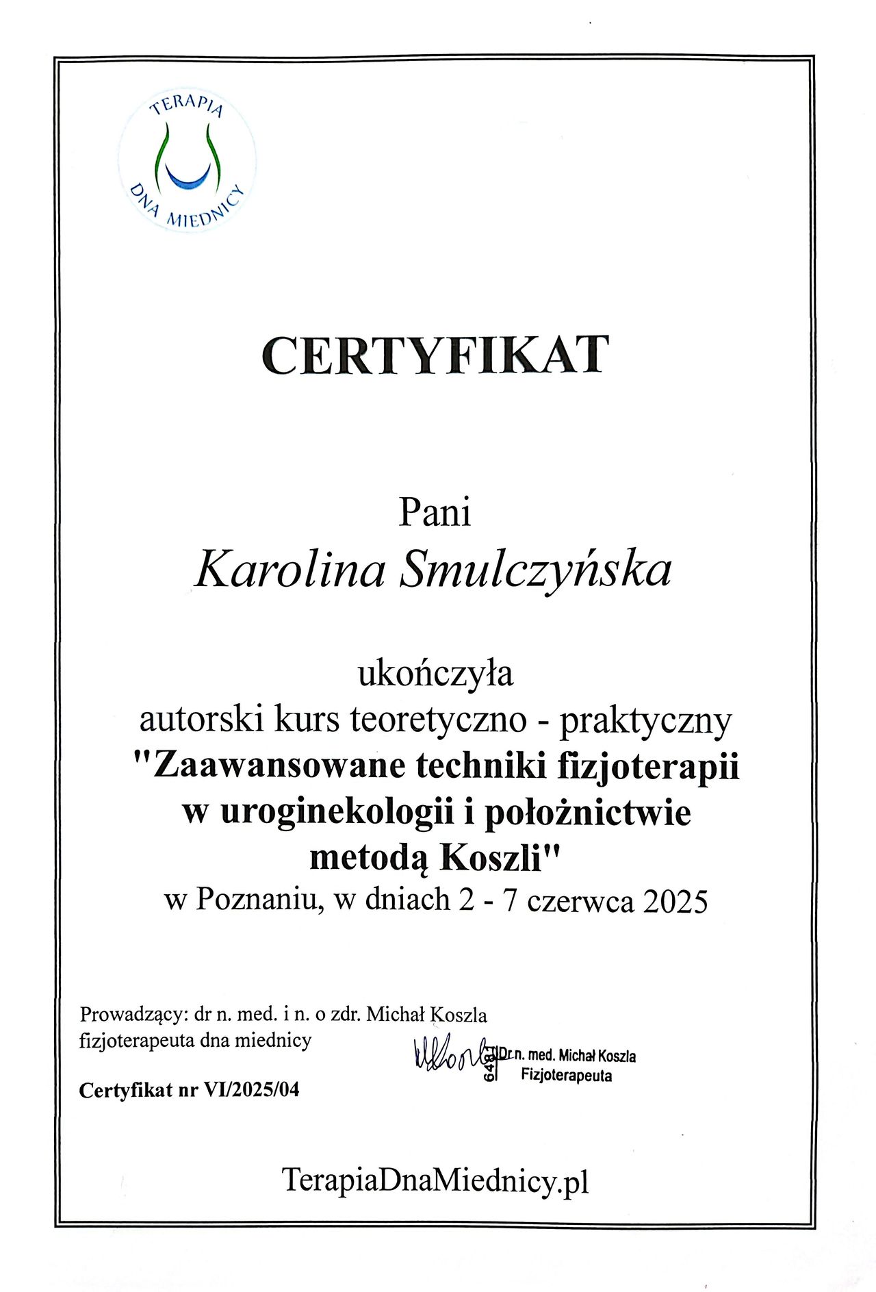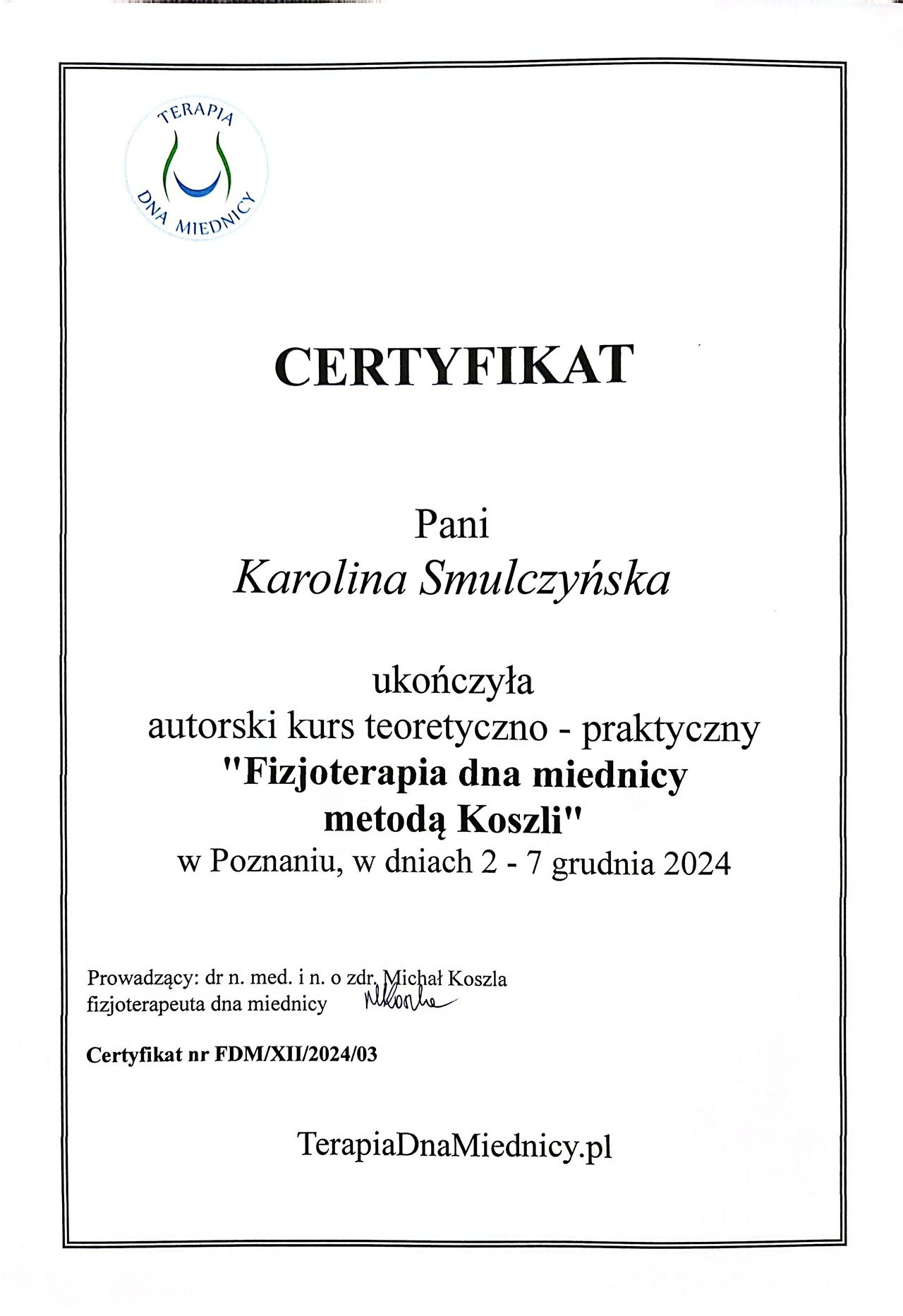 Do Pani Karoliny trafiłam na fizjoterapię urologiczną w czasie ciąży - od połowy II trymestru. Już od samego wejścia do kliniki czuć było jej pełne zaangażowanie i profesjonalne podejście. Pani Karolina przeprowadziła szczegółowy wywiad, udzieliła wielu cennych wskazówek, wykonała odpowiedni masaż oraz przygotowała notatki z zaleceniami do samodzielnej pracy w domu. Sama zaproponowała termin kolejnej wizyty. Przez cały czas czułam się komfortowo, a intymna atmosfera została w pełni zachowana. Z przyjemnością wrócę na kolejną wizytę!