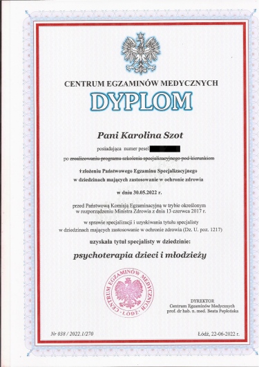 Absolutnie polecam. Rozpoczęłam terapię u Pani Karoliny jako zalęknione dziecko a zakończyłam jako pewny własnej wartości dojrzały człowiek.