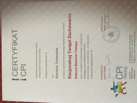 Ukonczylam Studium Terapii Poznawczo – Behawioralnej w Dolnośląskim Centrum Psychoterapii