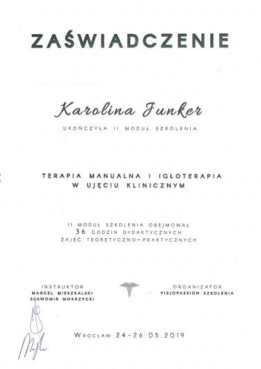 Polecam z całego serca Panią Karolinę! Pełen profesjonalizm, ogromna wiedza, zaangażowanie i ręce, które leczą! Już po kilku terapiach manualnych po bólu kręgosłupa nie ma śladu! Dziękuję