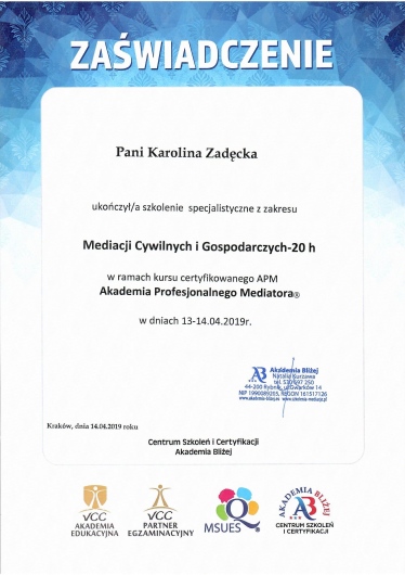 *Certyfikowany Kurs Profesjonalnego Mediatora,