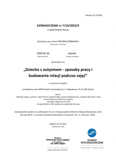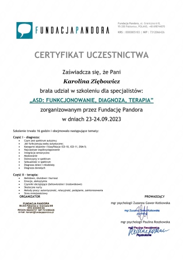 Serdecznie polecam! Jeśli ktoś rozważa diagnozę w kierunku autyzmu, ADHD lub obu jednocześnie, pani Karolina jest właściwą osobą, do której warto się zgłosić.