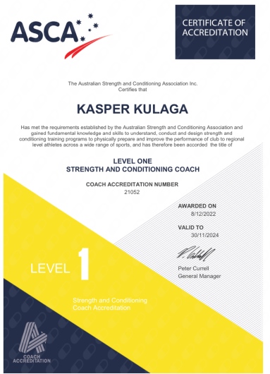 Kursy oraz szkolenia, które ukończyłem: - Ortopedyczny kurs Rehasport z zakresu stawu ramiennego oraz kręgosłupa szyjnego - Ortopedyczny kurs Rehasport z zakresu stawu kolanowego - Ortopedyczny kurs Rehasport z zakresu stawu skokowego - Ortopedyczny kurs Rehasport z zakresu kompleksu miedniczo-lędźwiowego, wymienione kursy pozwoliły mi stać się Certyfikowanym Fizjoterapeutą Ortopedycznym Rehasport - Współczesna Kinezyterapii - Praktyczna Strona Treningu - Olimpijskie Podnoszenie Ciężarów - Praktyczna Strony Treningu, - Australian Strength and Conditioning Association Coach - Masaż Tkanek Głębokich, - Ortopedyczna terapia manualna kończyn - Archeus szkoła medycyny manualnej
