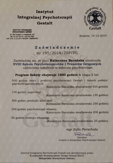 Spotkania przebiegały w bardzo miłej atmosferze. Jestem zadowolona z pomocy jakiej uzyskałam. Pani Katarzyna to bardzo kompetentna osoba. Polecam serdecznie