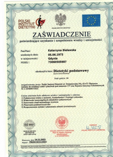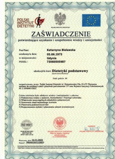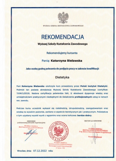 Jaki jest zakres porad oferowanych przez Katarzyna Bielawska?Katarzyna Bielawska to dietetyk. Na podstawie swojego doświadczenia i wykształcenia Katarzyna Bielawska oferuje usługi takie jak: Konsultacja dietetyczna.