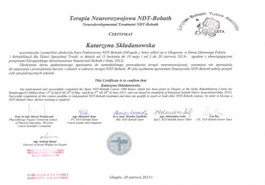 Serdecznie polecam Panią Katarzynę jako fizjoterapeutę dziecięcego.