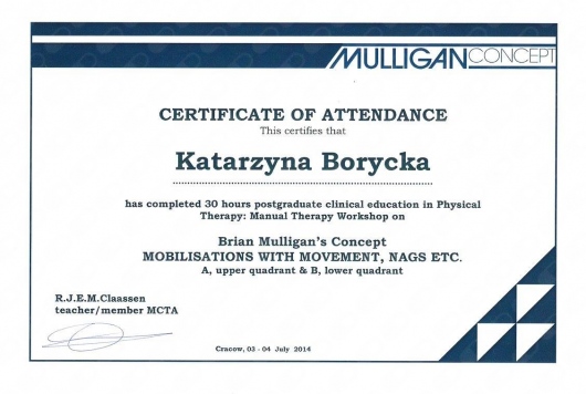 Terapia manualna wg Mulligan'a – kursy A i B